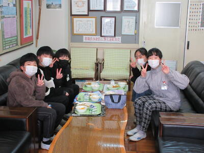 6年生が、校長室で給食の会食を行いました。6年間の思い出や中学校での抱負、将来の夢などについて質問しますが、自分の考えをしっかりともっている子供たちが多くいました。6年生のみなさん、残り少ない小学校生活ですが、一つでも多く楽しい思い出を作ってください。