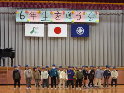 3月6日(金)6年生を送る会が体育館で行われました。児童計画委員会や後期代表委員のメンバーの運営・進行のもと、1~5年生は、6年生に感謝の気持ちや、頑張ってくださいなどのメッセージを込めた出し物を披露しました。6年生からも、1~5年生に楽しんでもらえるよう、工夫して発表をすることができました。全校で取り組む今年度最後の行事でしたが、とても良い会となりました。