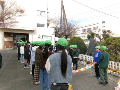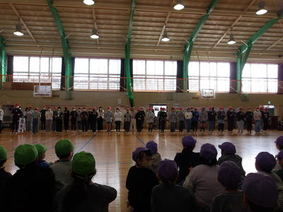 3月3日(火)5時間目の時間に全校で通学班会議・一斉下校を実施しました。通学班会議では、来年度の新しい通学班で集まり、集合時刻や登校の仕方などを確認しました。6年生のいる通学班は、交代式を行い、1~5年生の班員から6年生に感謝の気持ちを伝えました。今日の下校、そして明日の投稿から新しい通学班となります。安全に気を付け、ルールやマナーを守って登下校をしていきましょう。