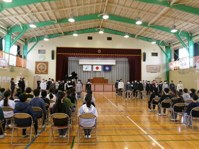 3月16日(月)3時間目、5・6年生合同の卒業式練習がありました。卒業式練習に5年生も参加し、当日の流れや式に参加するにあたっての心構えなどを学びました。6年生も5年生の前で呼びかけや歌を披露し、当日の巣立ちの言葉がよりよいものになるように改善点やもっと伸ばしていけるところを確認することができました。