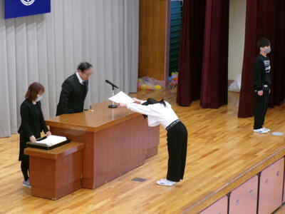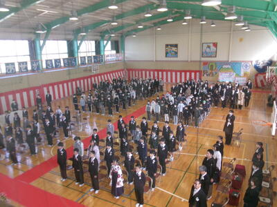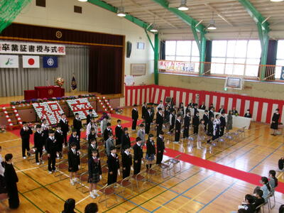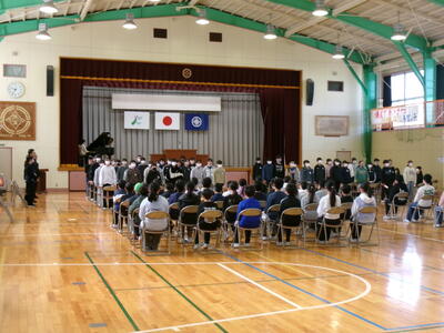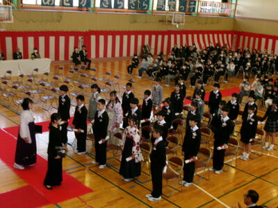 3月24日、卒業証書授与式が行われました。一人ひとりが最高学年としてふさわしい態度で、卒業証書を受け取りました。「巣立ちの言葉」も、『いのちの歌』『旅立ちの日に』の歌唱からも子どもたちの成長や感謝の気持ちが伝わってきました。在校生代表で参列した5年生もしっかりと見送ってくれました。