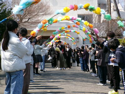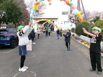 3月19日(木)、5年生の児童が卒業式後に行う6年生の見送りの練習をしました。当日の役割分担や配置を確認しました。6年生が気持ちよく最後の正門までの道を歩けるように、高さなどを真剣に考える5年生の様子が印象的でした。5年生、当日も在校生の代表としてよろしくお願いします。
