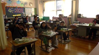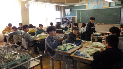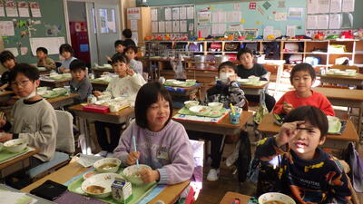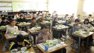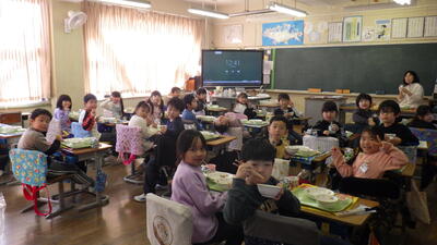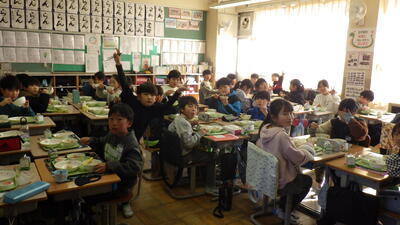 3学期初めての給食が始まり、「給食だ!楽しみ!」と喜ぶ馬室っ子の姿がたくさん見られました。