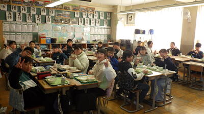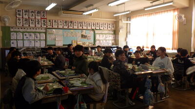 メニューはお正月にちなんだもので季節感を感じることができました。どのクラスも味わって、楽しそうに食べていました。3学期も馬室小のおいしい給食を食べて、心も体も大きく成長していきましょう。