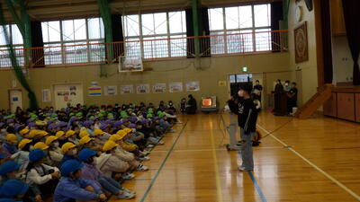 1月16日(木)業間休みに、授業中以外の時間に災害が起きた場合を想定し、自分の命を守るためにはどうすればよいか考え、正しい行動のしかたを身に付けられるよう避難訓練を行いました。子どもたちは、「おかしもち」の約束を守りながら、自分のいる場所に合わせて避難行動を取ることができました。