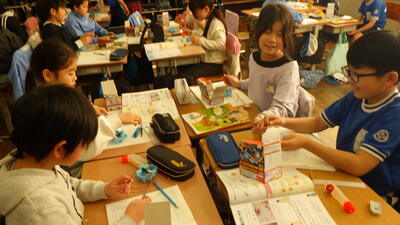 3年生の理科の授業で、電気キットを使って実験を行いました。難しい組み立ても、みんなで協力しながら行っていました。予想外の実験結果に驚いている馬室っ子がたくさん…!初めて覚える言葉もたくさんありますが、しっかりと理解して、自分の考えを友達に伝えられるようになりました。これからもたくさんの実験が待っているよ!