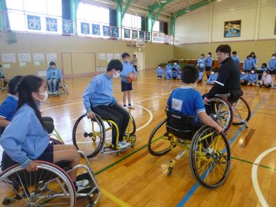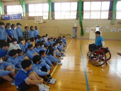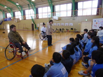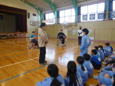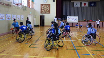 1月24日(金) 車いすバスケットの講師の方々をお招きして、5年生が2時間目と3時間目に障害者スポーツ体験講座を体験しました。はじめに選手と先生たちによる試合を見学し、その後に子どもたちも全員が車いすバスケットをさせていただきました。また、挑戦することの大切さや誰もが平等で楽しく暮らしていけるユニバーサル社会に向けてのお話、質問コーナなどがありました。子どもたちの感想からも、とても充実した時間となったことがわかりました。