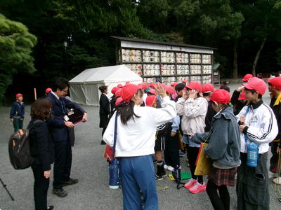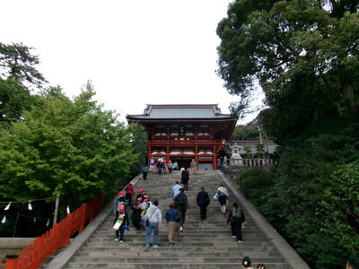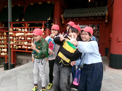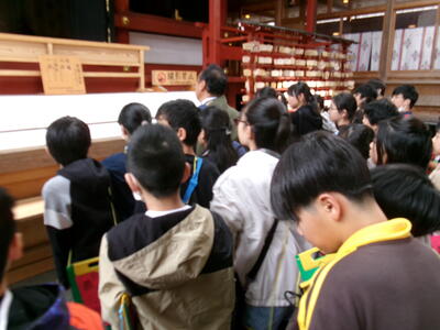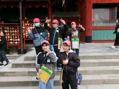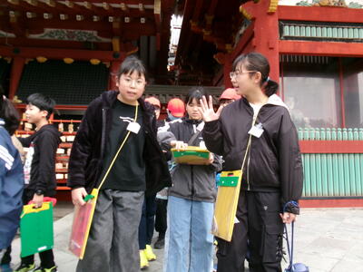 初めに訪れた鶴岡八幡宮では、クラス写真を撮影した後に、班行動で散策しました。お参りをしたり御社殿を見て回ったり楽しく過ごしました。