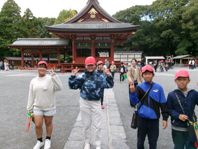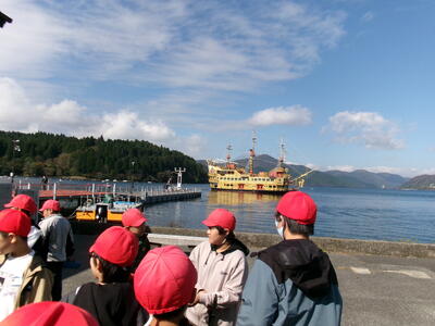 10月29日から1泊2日で、6年生が鎌倉・箱根方面へ修学旅行に行ってきました。好天にも恵まれ、順調に日程を進めることができました。今年は、遊覧船に乗り、芦ノ湖の色づき始めた紅葉を見ることができました。また、6年生の集合や見学態度もしっかりとできたので、時間にゆとりができ、海辺で楽しく過ごすこともできました。