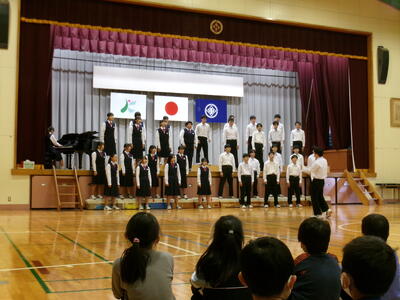 11月12日(水)に市内音楽会が行われ、5年1組が馬室小代表として出場しました。合唱「夢の世界を」と「Believe」を披露しました。子どもたちは、緊張した面持ちでしたが、きれいな歌声で練習の成果を発揮することができました。審査の先生からも「透明感のあるすてきな合唱でした!!」というお褒めの言葉をいただきました。子どもたちの表情からも、充実感と達成感が伝わりました。本当によくがんばりました!
