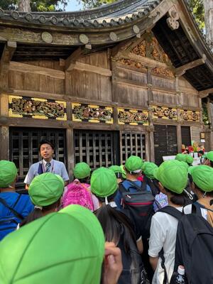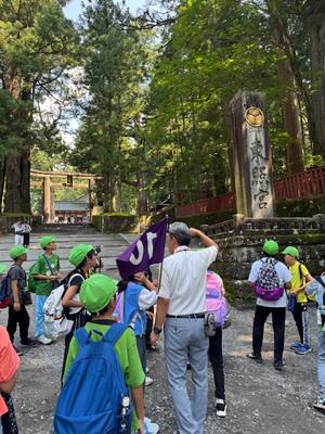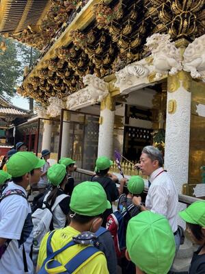 学級ごとにツアーガイドの方の案内を聴きながら日光東照宮の見学をしました。迫力ある世界遺産の建造物を目の当たりにして、関心高く見学を行うことができました。