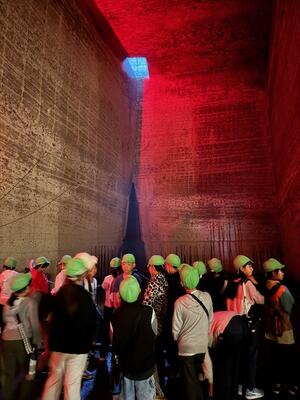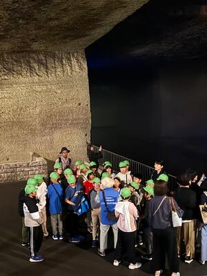 大谷資料館では、地下30メートル付近まで下り、沢山の石が切り出された後の神秘的な空間を見学しました。巨大な地下空間は温度も低く、ひとときの涼をとることができました。