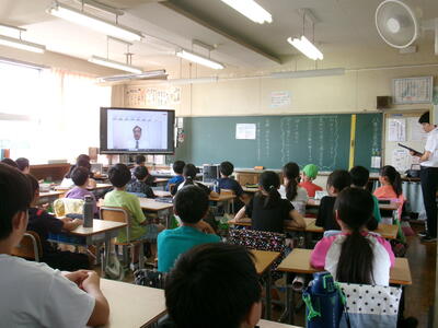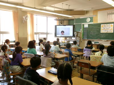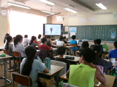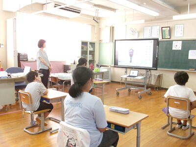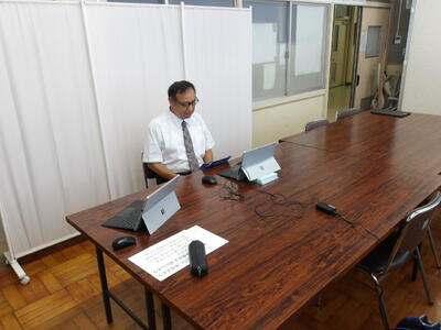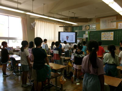 8月29日(金)学校に子どもたちの元気な声が戻ってきました。2学期始業式も暑さ対策のため、リモートで行われました。校長先生からは、『がんばったことを伝えよう』『時間を守ることや自分からあいさつすることの大切さ、相手を傷つけないていねいな言葉遣い』についてのお話がありました。ひとりひとりが気をつけて、2学期もみんなが明るい気持ちで過ごせるといいですね。写真は、始業式での全クラスの様子です。