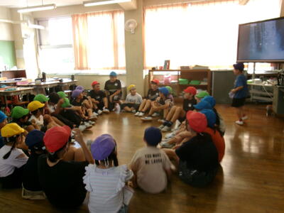 本日の昼休みはフレンドリータイムでした。厳しい暑さのため室内での実施となりましたが、高学年の児童を中心に話し合い、各班で遊ぶ内容を決めながら活動することができました。中にはパソコンを使ったみんなでできる遊びを考える班もありました。どの班も笑顔で楽しく活動する様子が印象的でした。