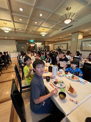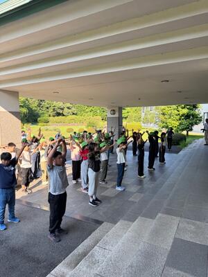 閉校式では仲間と楽しく過ごした部屋やおいしい食事、お風呂などの施設を提供していただいたホテルの方々に感謝の気持ちを伝えることができました。子どもたちはたくさんの思い出をつくり、2日目の活動に向けて出発をしました。子どもたちは全員元気です。