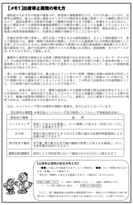 今後、体調不良によるお休みは基本的に「出席停止」ではなく「欠席」になるなど、移行に伴う取扱いの変更点がありますので、ご確認いただければと思います。