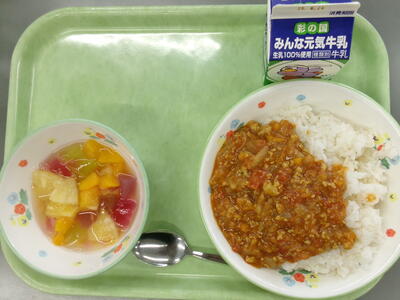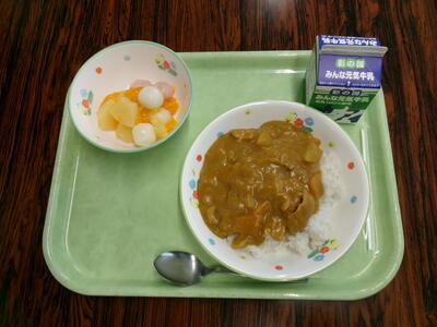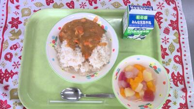 12月4日(木)のメニュー:牛乳、カレーライス、フルーツポンチ