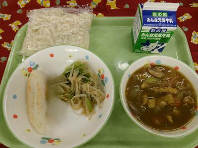 2月6日(金)のメニュー:牛乳、カレー南蛮、笹かまぼこ、小松菜のごまあえ
