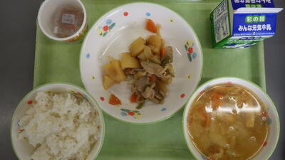 6月2日(月)のメニュー:牛乳、ごはん、彩の国納豆、肉じゃが、利久汁