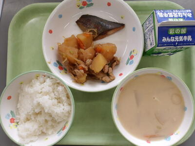 今日の相性汁はみそ汁に牛乳を加えた料理です。一般的にはみそ汁に牛乳を入れないため意外な組み合わせという印象があります。牛乳を加えることで味がクリーミーになり、コクも増して美味しかったです。運動会の次は新体力テストや水泳の授業も控えています。たくさん食べて体力をつけていきましょう!